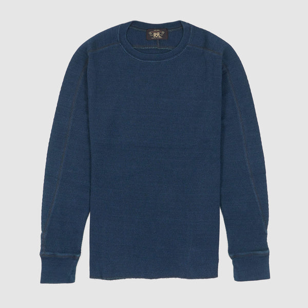 Double RL Long Sleeve Crew Neck Indigo Jacquard – Knit Waffle T-Shirt – indigo