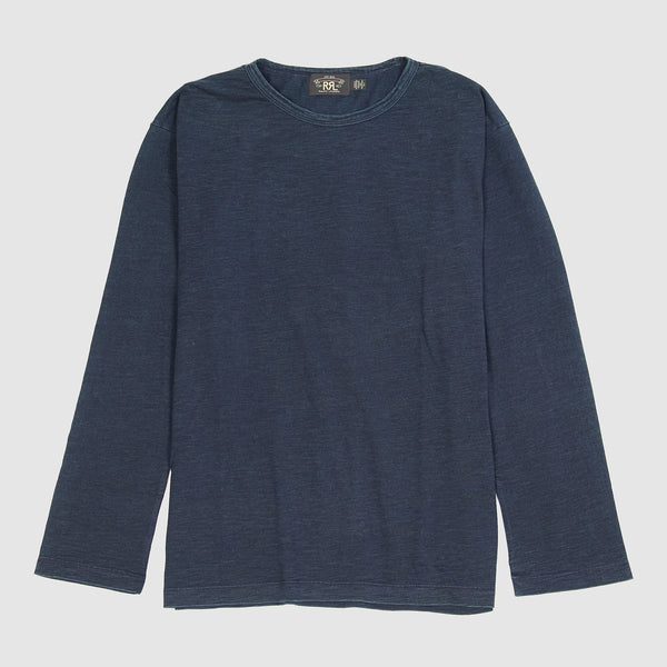 Double RL Long Sleeve Indigo Crew Neck T- Shirt – blue