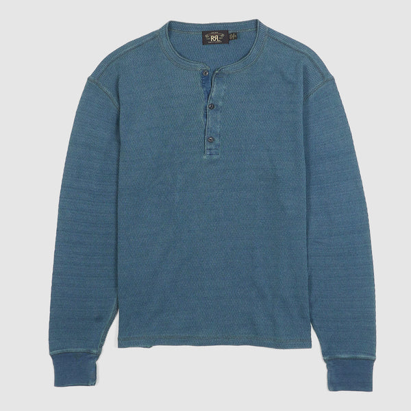 Double RL Long Sleeve Jacquard-Knit Indigo Dyed Henley Shirt – indigo